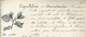 « Haricot nain, rustique, hâtif, productif, très facile à reconnaître à ses feuilles petites d’un vert foncé presque noir et finement cloquées sur toute leur surface. […] Son principal avantage est d’être plus résistante aux maladies et aux intempéries …» Vilmorin-Andrieux, Les plantes potagères, 1891, p. 286. (Coll. Montviette Nature)