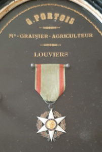 Le 19 juin 1906, la médaille de Chevalier de l’Ordre du Mérite agricole lui est décernée pour ses 20 ans de pratique, médaille conservée par la famille. La même année il reçoit une récompense pour sa « culture de légumes secs et ses expériences nombreuses pour la sélection et la propagation des meilleures espèces de graines ». Recherches menées par Claude Cornu et Jacques Normand, administrateurs de la SED, Société des Etudes Diverses de Louviers. Lire aussi Ferme, manoirs et colombiers du Pays de Louviers, éditions Société des Etudes Diverses de Louviers et sa région, 2008.