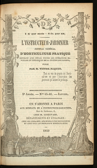 Référence des documents : Paquet, Victor (1812-1849), “L’Instructeur jardinier,” Hortalia, consulté le 14 février 2026, https://bibliotheque-numerique.hortalia.org/items/show/7921.